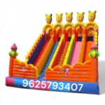 Bring Home the Magic with Paras inflatable’ Mickey Mouse Inflatable Bouncy Jhula (5 Nali)! Looking for Mickey Mouse Jhula price, Mickey Mouse Jumping Jhula price in India, or Mickey Mouse Bouncy? Look no further! WondeRides presents the ultimate inflatable playground for your kids: the Mickey Mouse Bouncy Jhula (5 Nali). This giant inflatable bouncer, measuring a spacious 22ft x 26ft, is perfect for both indoor and outdoor fun. Unbeatable Features: Endless Jumping Fun: The Mickey Mouse Bouncy Jhula provides a safe and bouncy haven for kids to jump, climb, and play for hours. 5 Slides (Nali): Multiple slides add an extra layer of excitement and encourage imaginative play. Durable Construction: Made from high-quality SRF fabric, this inflatable bouncer is built to last and withstand years of bouncing fun. Safe for Indoor & Outdoor Use: The Mickey Mouse Jhula is perfect for birthday parties, backyard playdates, or even indoor play areas. 3-Year Warranty: We stand behind our products! Enjoy a 3-Year warranty for peace of mind. Powerful Air Blower Included: The Mickey Mouse Jhula comes with a high-powered air blower for quick inflation and deflation. Easy Installation: Spread out the Mickey Mouse Bouncy Jhula on a flat, clean surface. Attach the air blower to the designated inflation points. Turn on the blower and inflate the bouncer until firm. Secure the bouncer with anchor points (included) for outdoor use. Let the bouncing begin! Mickey Mouse Jhula Video: We understand you might want to see it in action! Check out similar inflatables on our website or social media for reference videos. Mickey Mouse Jhula Price in Delhi & All of India: WondeRides offers the best Mickey Mouse Jhula price in India! We provide several payment options to suit your needs: Cash on Delivery (COD): Pay only a 10% advance and the remaining balance upon delivery. Easy Monthly Installments (EMI): Spread the cost over convenient EMIs using your credit card. Don’t wait! Bring the magic of Mickey Mouse home and create lasting memories for your kids. Order your Mickey Mouse Bouncy Jhula from WondeRides today! Technical Specifications: Feature Specification Brand Paras inflatable Size 22ft x 26ft Material SRF Fabric Slides (Nali) 5 Warranty 3 Years Blower Included Suitable for Indoor & Outdoor Use Call to Action: Visit our website or contact us today to learn more about the Mickey Mouse Bouncy Jhula and other exciting inflatables from Paras inflatable …Read Less